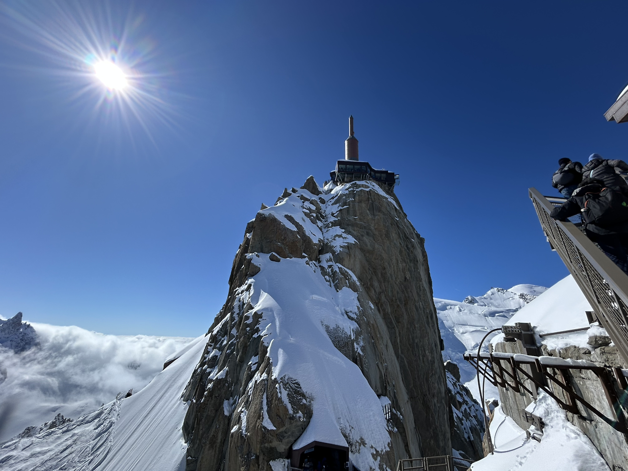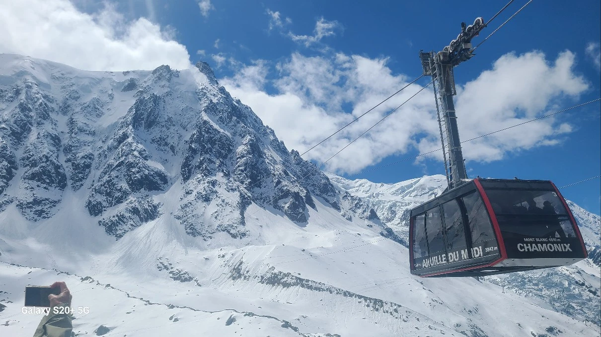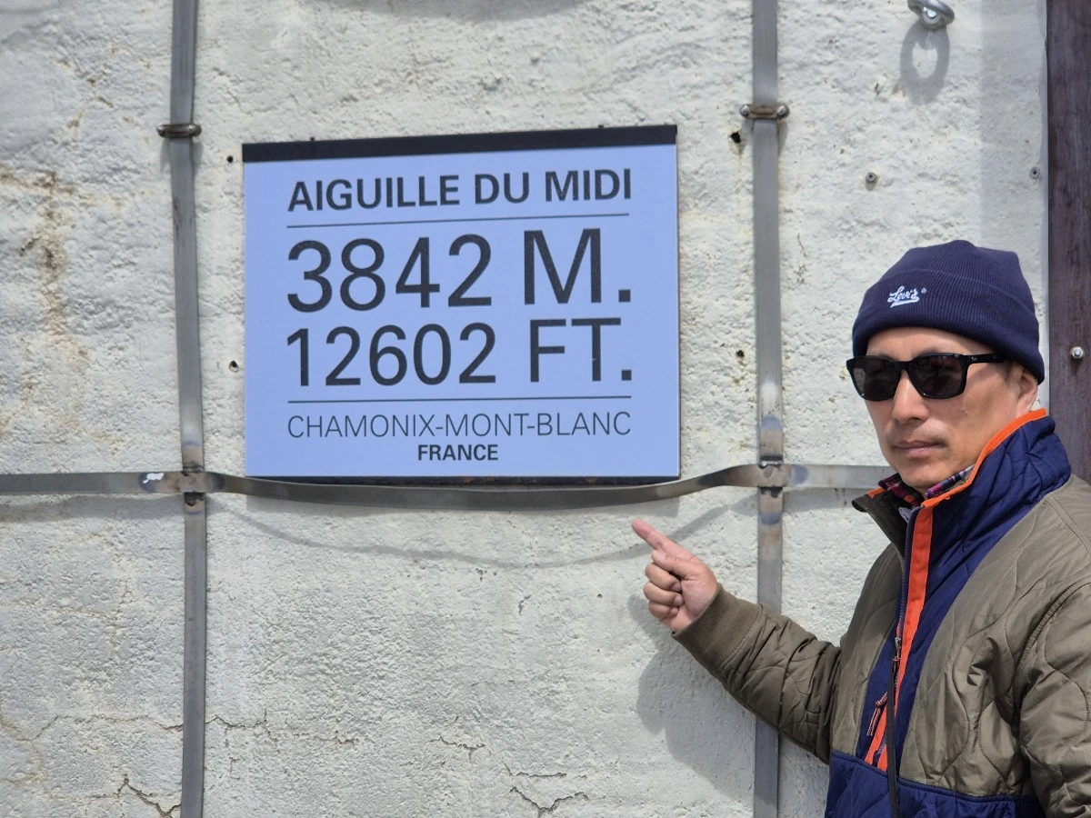 샤모니몽블랑에서 에귀뒤미디 전망대에 오르기 전, 인천공항에서 구매한 고산병 약을 먹었다. 우리 일행은 60세 전후이기 때문에 개인의 건강과 안전이 최우선이었다. 케이블카를 타고 올라가며 보는 만년설의 장관은 압권이었다. 케이블카의 중간 정착지에서 환승해서 최종 기착지인 에귀뒤미디 전망대에 도착했다.