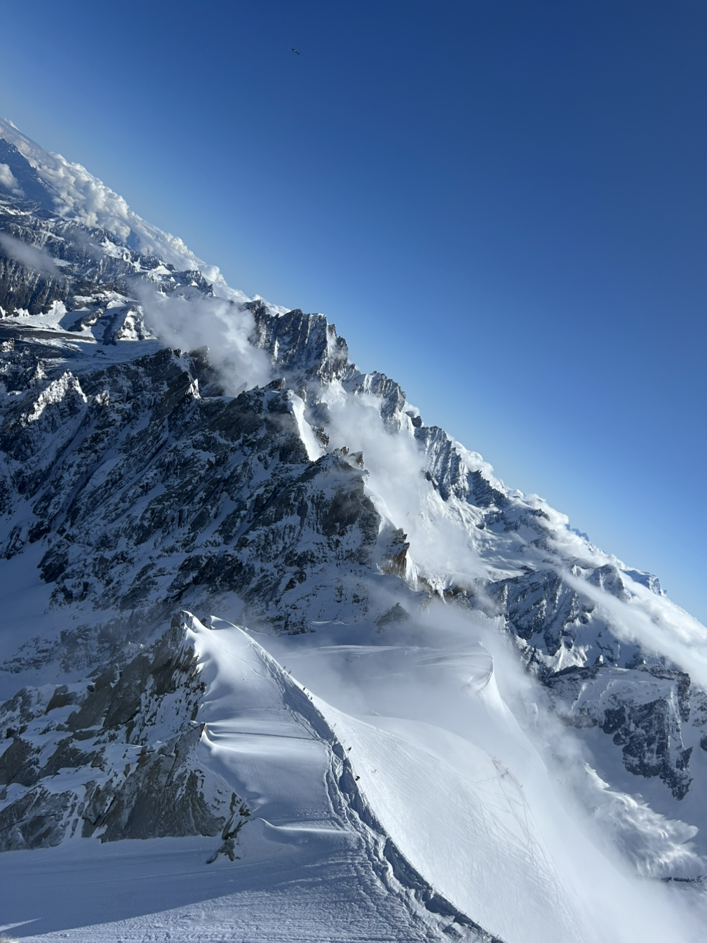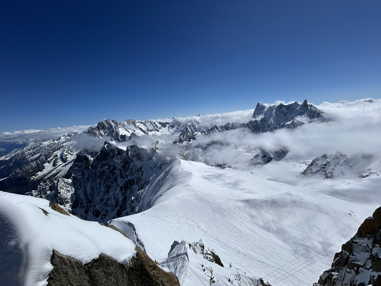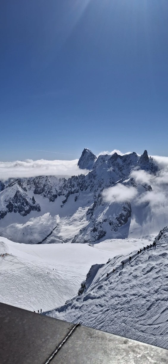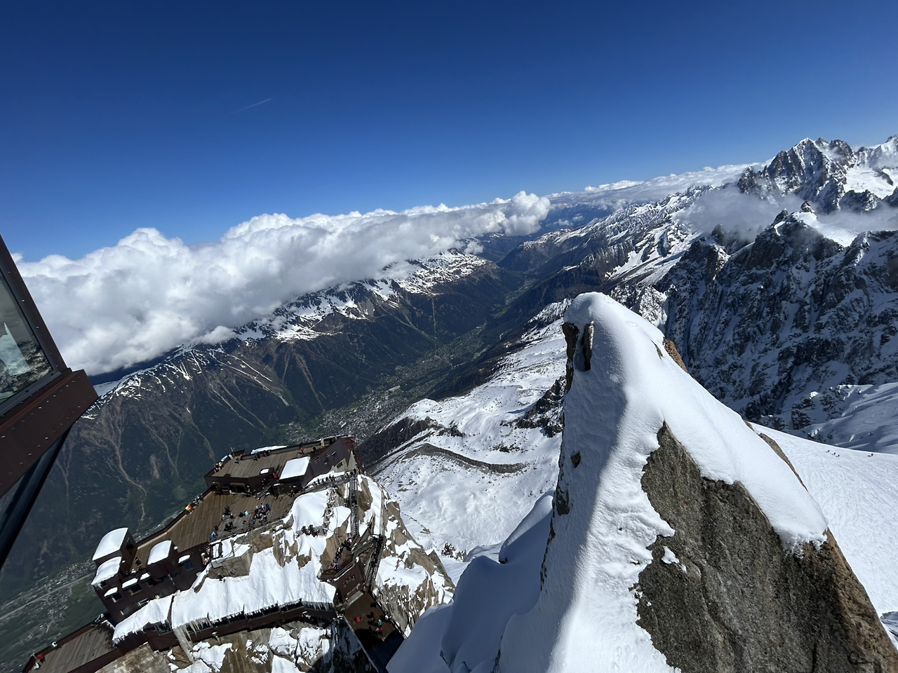 샤모니몽블랑에서 에귀뒤미디 전망대에 오르기 전, 인천공항에서 구매한 고산병 약을 먹었다. 우리 일행은 60세 전후이기 때문에 개인의 건강과 안전이 최우선이었다. 케이블카를 타고 올라가며 보는 만년설의 장관은 압권이었다. 케이블카의 중간 정착지에서 환승해서 최종 기착지인 에귀뒤미디 전망대에 도착했다.