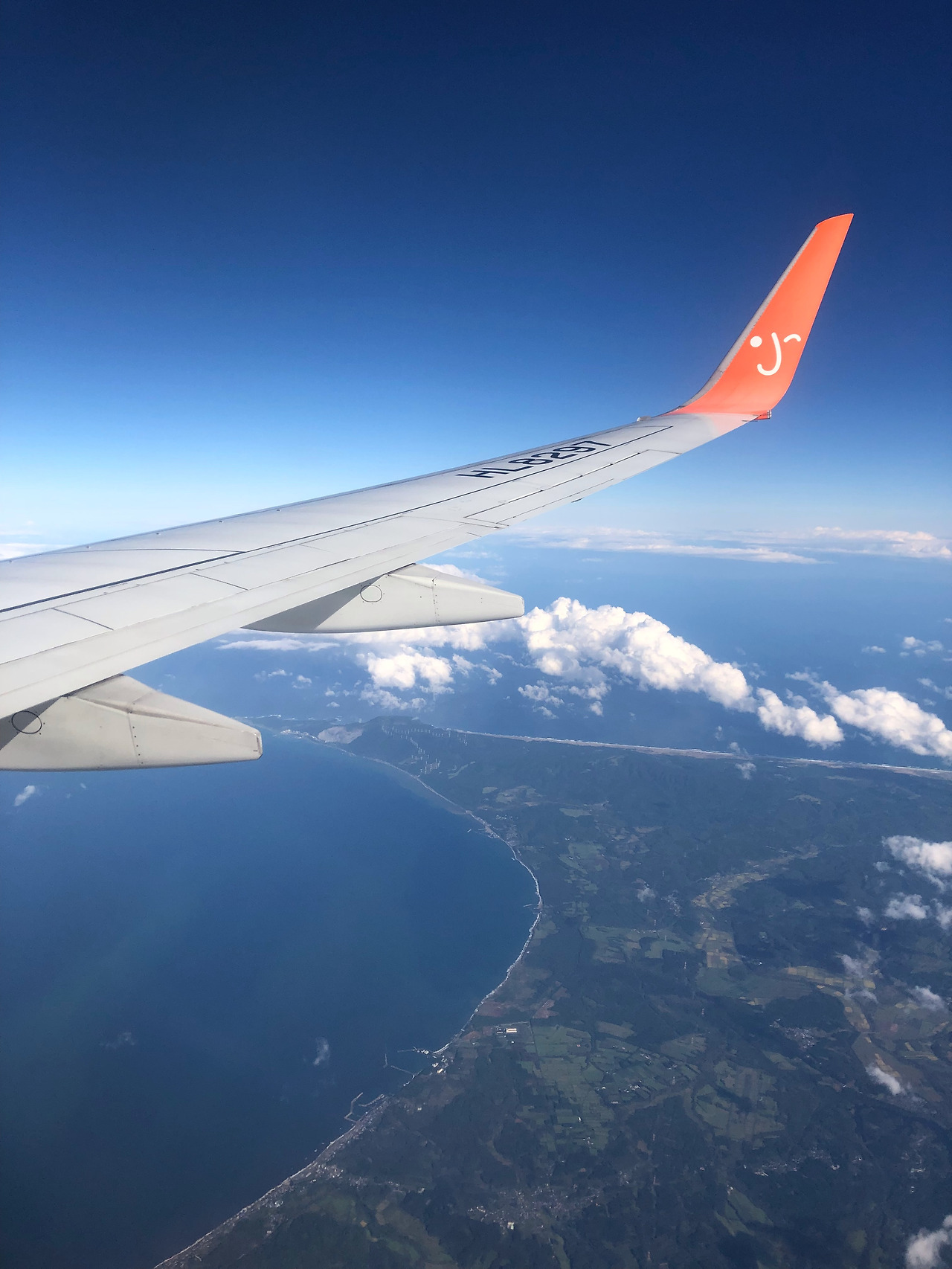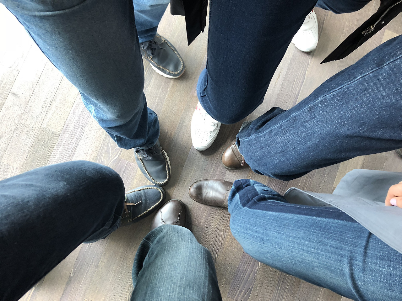 그때 그 시절 같았으면 누군가 직접 계획을 수립해 보겠다고 나섰을 텐데, 쉽고 편한 방법을 좋아하는 걸 보면 이젠 모두가 늙어가고, 아니 익어가고 있었다. 그렇게 그 친구 직장 동료가 다녀온 일정을 참고로 한 단계 업그레이드해서 모든 예약을 마치고 홋카이도로 향했다. 그날은 2018년 10월의 첫날이었다. 친구 아내의 제안으로 일일 패션 콘셉트도 정했다. 출발하는 날의 콘셉트는 청바지였다. 아쉽지만 노출을 꺼리는 회원을 존중하기 위해서 개인이 노출되지 않는 여행사진을 올린다. 출발 시 청바지 하반신만 나온 사진이 브런치에 올리는 여행기록상 유일하게 우리 일행 모두 나온 사진이다.