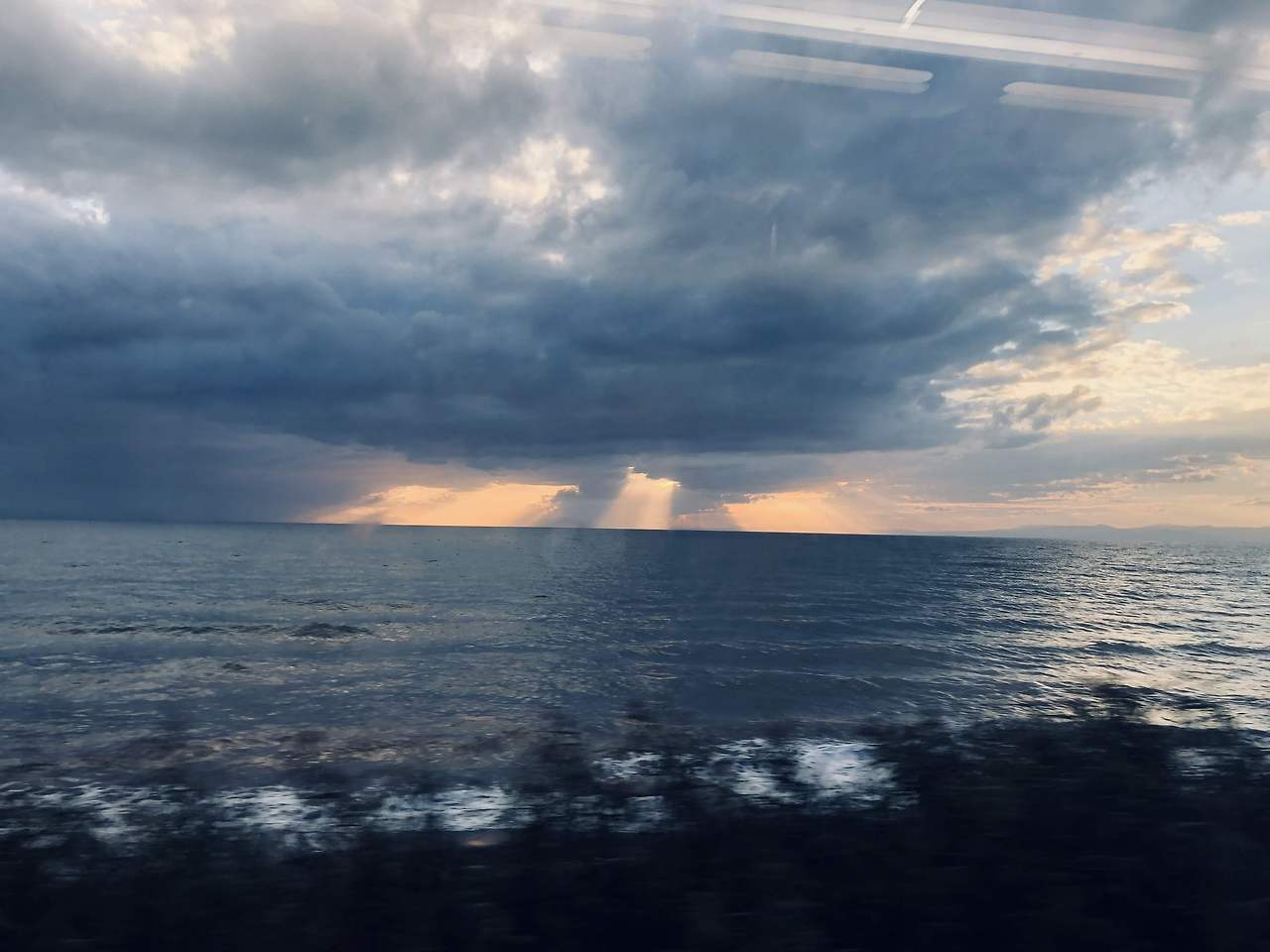 기차 타고 달리던 중 멋진 풍광을 보았다. 천지창조 때 빛이 있으라! 이와 비슷하진 않았을까 상상해 보았다. 북위 42도26분42.7초 동경 140도53분01.4초 지점에서 촬영