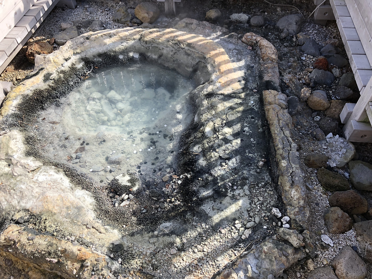 관광객들이 던져 넣은 동전들이 유황 성분 때문인지 검게 변해 있었다. 날계란 넣으면 바로 삶아질 듯!