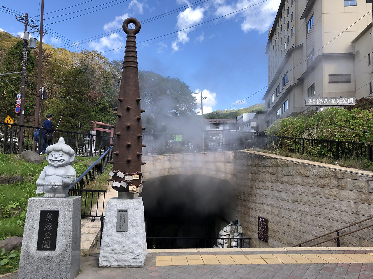 노보라베쓰 시내의 공원이다. 보이지 않는 저 밑에서 물끓는 소리가 들리고 간헐적으로 뜨거운 김이 팍팍 올라왔다. 안전지역까지 몇깨의 계단이 있었지만 별로 내려가고 싶지 않았다.