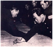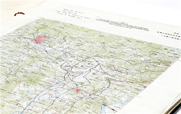 접합시킨 정전협정 지도에 군사분계선을 그리는 모습@유엔사군정위