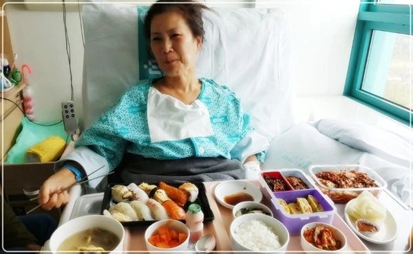도착하자마자 함께 저녁식사 후 밤이 길다는 입원실에서 시간을 보내던 중