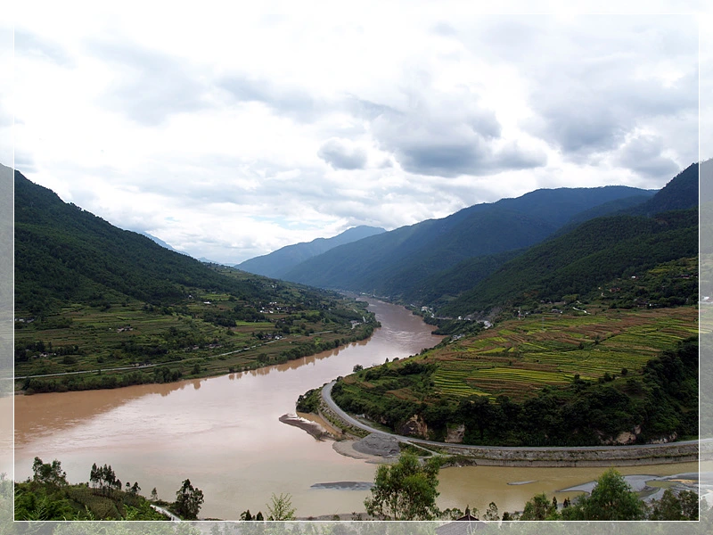 (차우토우에서 바라본 금사강과 우측의 옥룡설산)