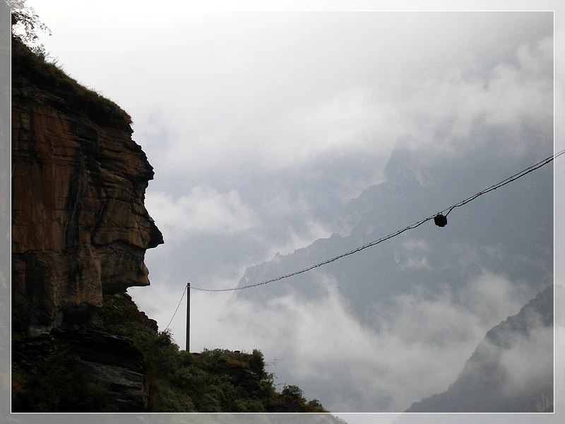 운무 속으로 케이블카에 매달린 원통들이 하나둘씩 구름 속으로 빨려간다.