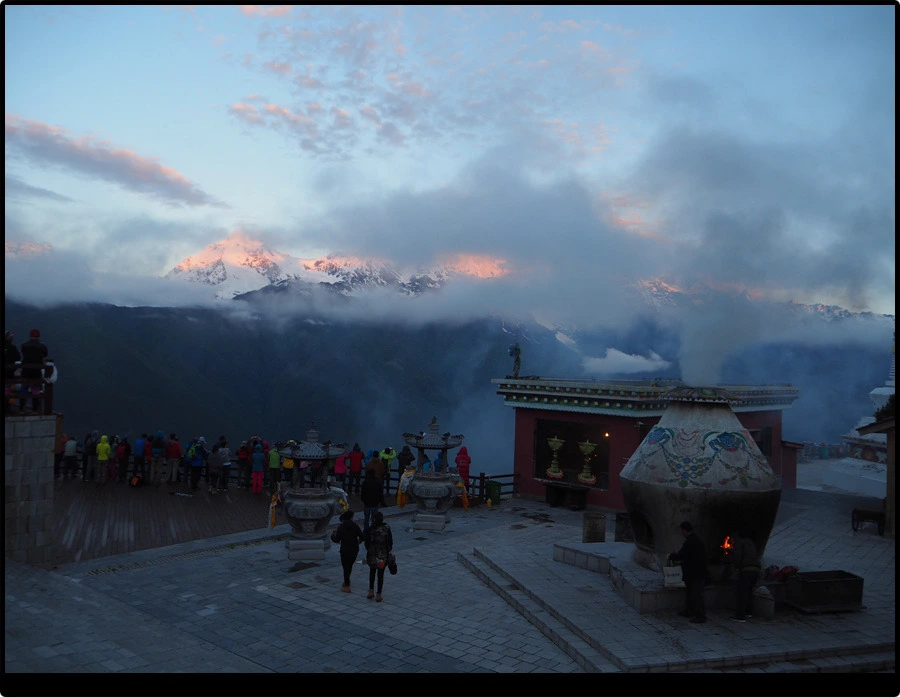 그런데 완전 옥에 티로 운무가 메리설산 정상을 가린다.