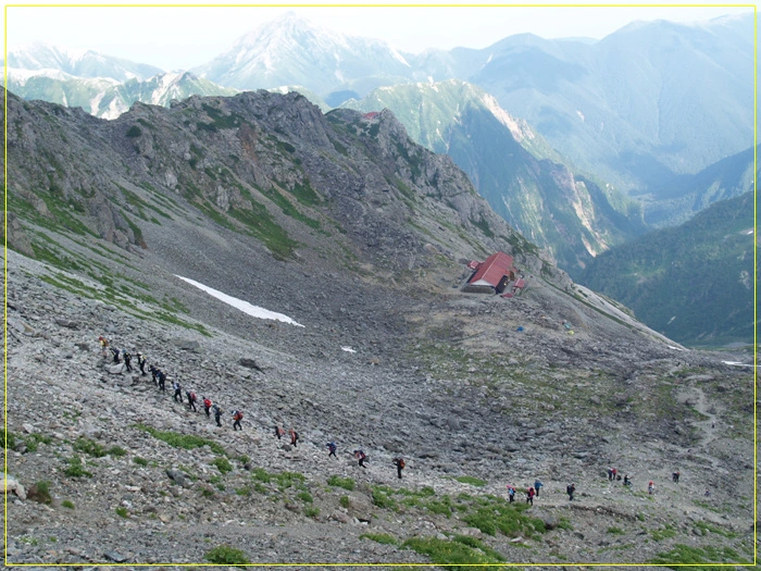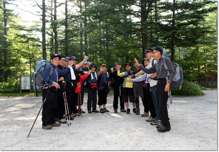 산장에 미리 맡긴 후 조반을 들자마자 우린 북알프스 종주를 향한 대장정에 든다.