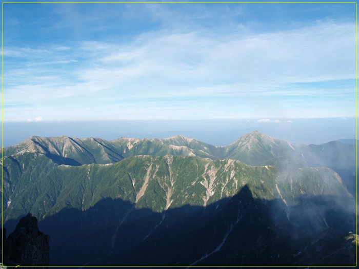 (정상에서 바라본 왼쪽의 오텐쇼우다케(2921.9M)와 조넨다케(2857M)의 전경)