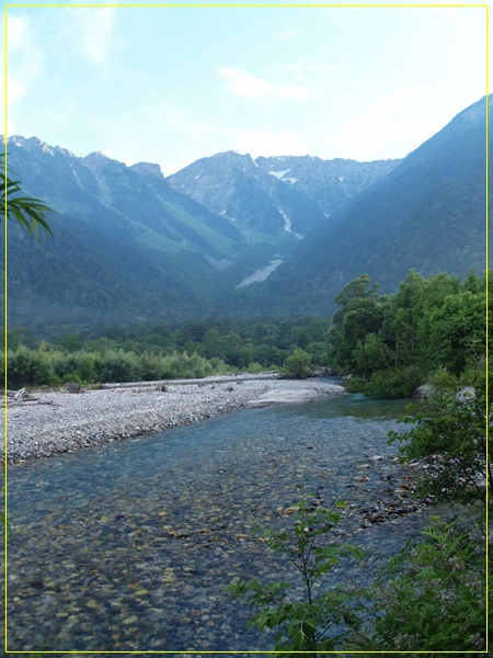 아주사가와강 너머로 북알프스 연능이