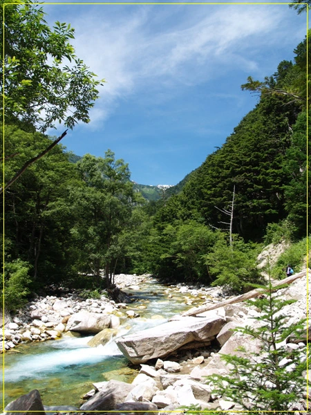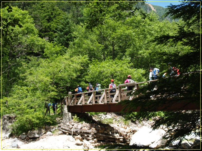 이 다리를 건너면 병풍암 안부를 지나 가라자와 산장을 거쳐 오쿠호다케로 오를 수 있다.