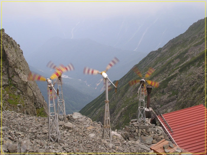 어느새 우리의 발걸음이 호다카 산장을 발아래에 두게 되는데 풍력발전소가 눈에 띈다.