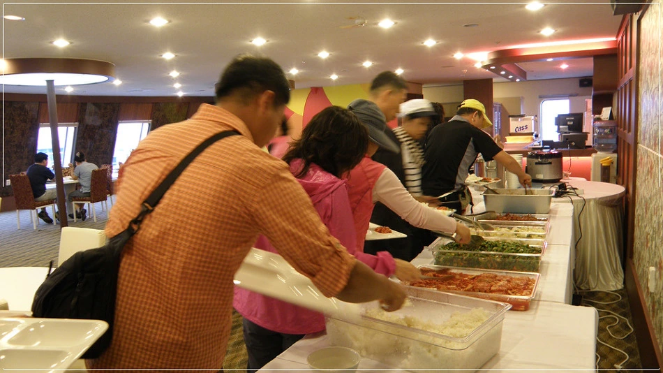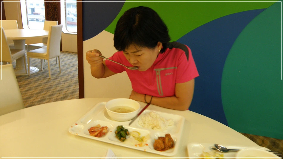 선실 식당에서 배식된 밥과 반찬이 의외로 괜찮다.