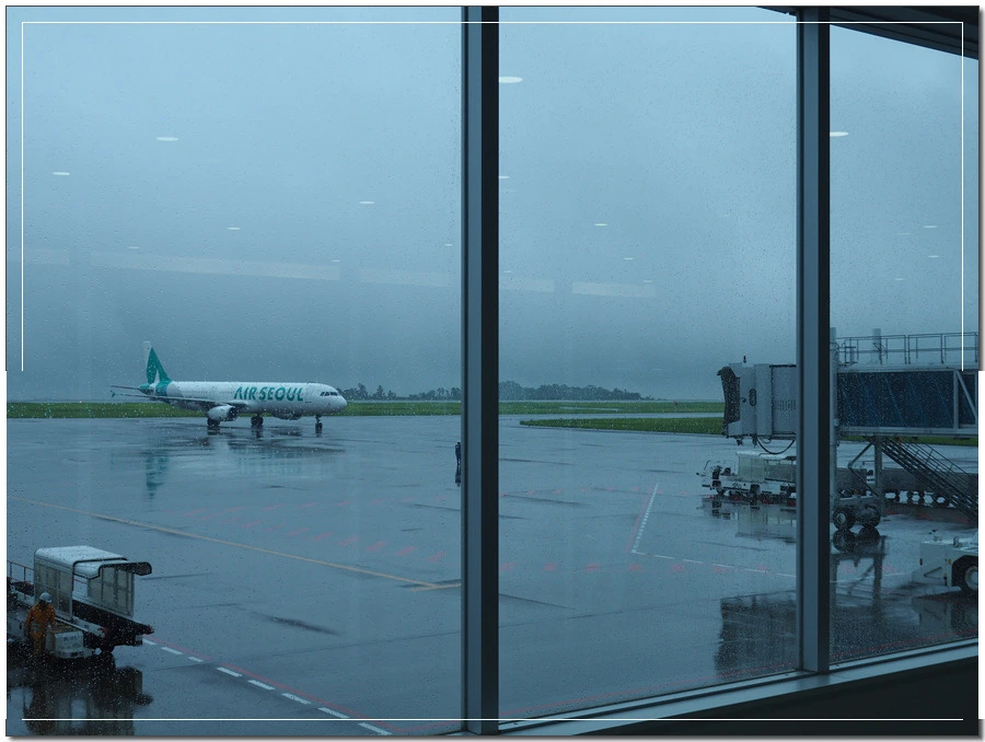 호텔을 떠난 얼마 후부터 내리던 비가 공항에 이르자 제법 거세다.