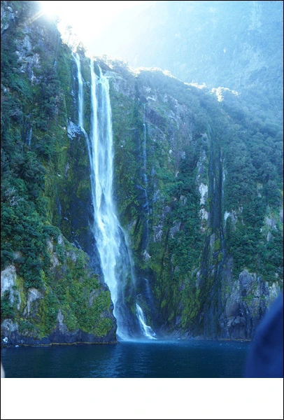 밀포드 사운드 유람선의 절정이라는 폭포에 접근한다.