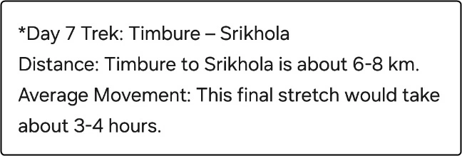 7일 차 팀부레에서 스콜라까지 6~8Km이며 3~4시간 걸어야 한다고 돼 있다.