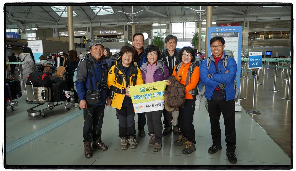 각자 짐을 찾아 대합실을 나와 AM 트래킹의 팻말을 들고 있던 메인 가이드 MANOJ를 만났는데....