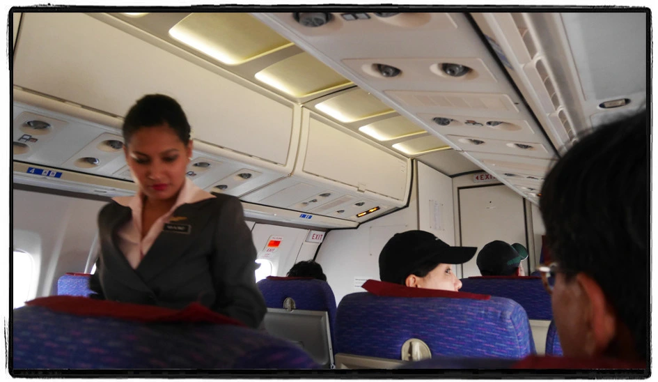 Bubbhe Air 항공사의 여승무원이 기내 서비스를 하는데