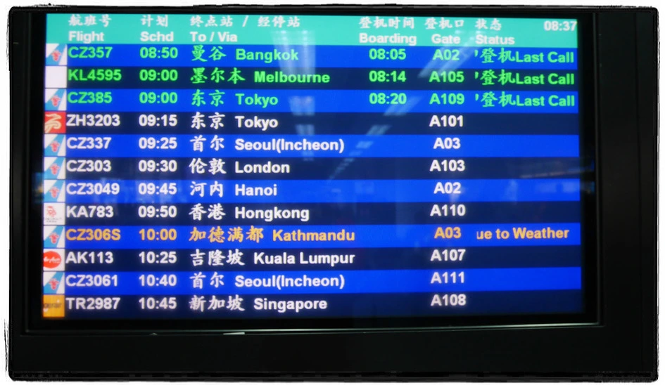 - 광조우 공항발 네팔 카트만두행 CZ 306S 편 12:05 (중국시각)