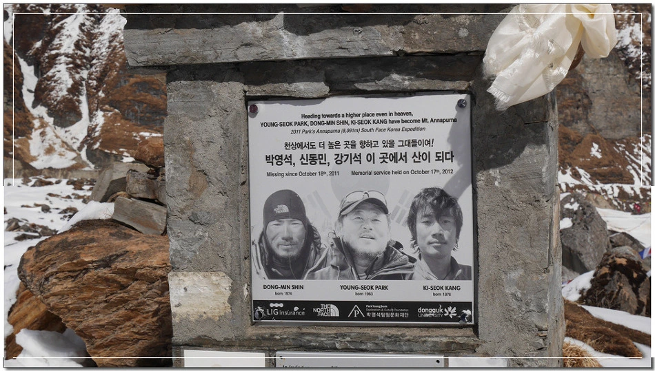 우리는 네팔의 럼주 한 병을 들고 이곳 안나푸르나에 영원히 잠든 사나이들을 만났다.