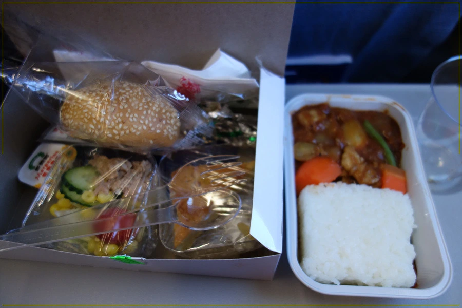 기체가 안정을 찾은 후 나눠주는 기내식을 받아 든다.