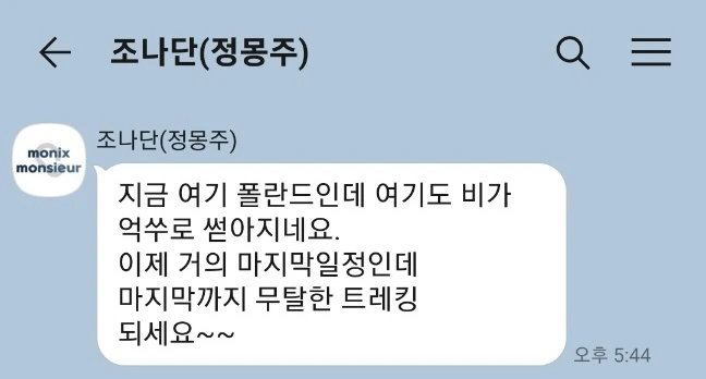 하루종일 내려 장난이 아녔는데 지금까지도 내리고 있는데 트래킹 잘했냐며....