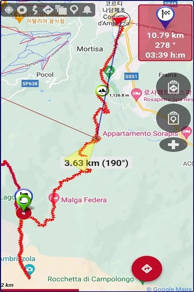 뷰~포인트를 다녀와 코르티나 담페초의 호텔까지 걸어갈 예정...