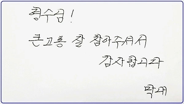 두 분이 가시면서 내 손에 쥐어준 봉투 속 메모지엔 따스한 마음과 정이 뚝뚝 흐른다.