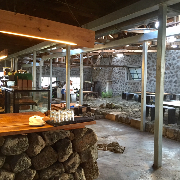택시기사님과 함께 1시간 가량을 대화를 나누며 들어왔다. 육지사람 같지 않았다는 이야기부터, 사투리 경연대회이야기. 혹시 선생님이세요? 라고 내 직업을 단번에 맞추시면서 자신은 촉이 좋다는 말씀. 나와 헤어진 그남자는 아마도 평생 땅을 치고 후회할꺼라는 위로의 이야기. 어딜가서든 사랑받을 것 같다고 걱정말라는 이야기, 딸아이의 취업걱정이야기까지. 기사님께서 마지막엔 오는동안 즐거웠다고 말씀해주시니 초딩친구와 기사님까지 괜시리 더 마음이 몽글몽글해진다. 그러다 이 카페 이야기를 듣게 되었다. 폐공장을 개간했다는 건 알았는데, 이곳은 전분공장이였다고 한다. 제주도에서는 고구마나 감자가 많이 나서 전분으로 만들어 판매했나보다. 제주에서 서울 한남동까지 이어져있던 앤트러사이트. 엄청 기대하는 마음으로 달려갔던 곳이다.