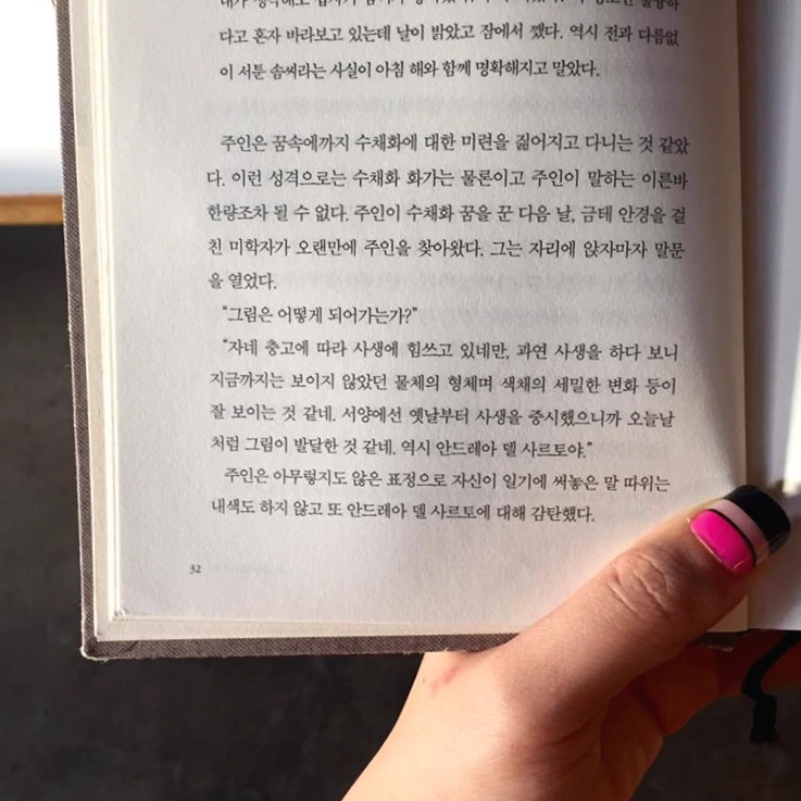 수채화 꿈을 꾸는 주인, 안드레아 델 사르토를 말하는 작가. 일기에 써놓은- 이라는 단어들. 아하 이런 느낌이 구나 이사람들. 미학적인 공기가 불었다. 취향이 뚜렷하고, 공간과 미학에 대한 관심. 좋아하는 소설가 이름을 원두 를 선택할 수 있는 이름으로 붙여넣어 끊임없이 부르고 표현하게 만든 장치까지. 매력적이였다.