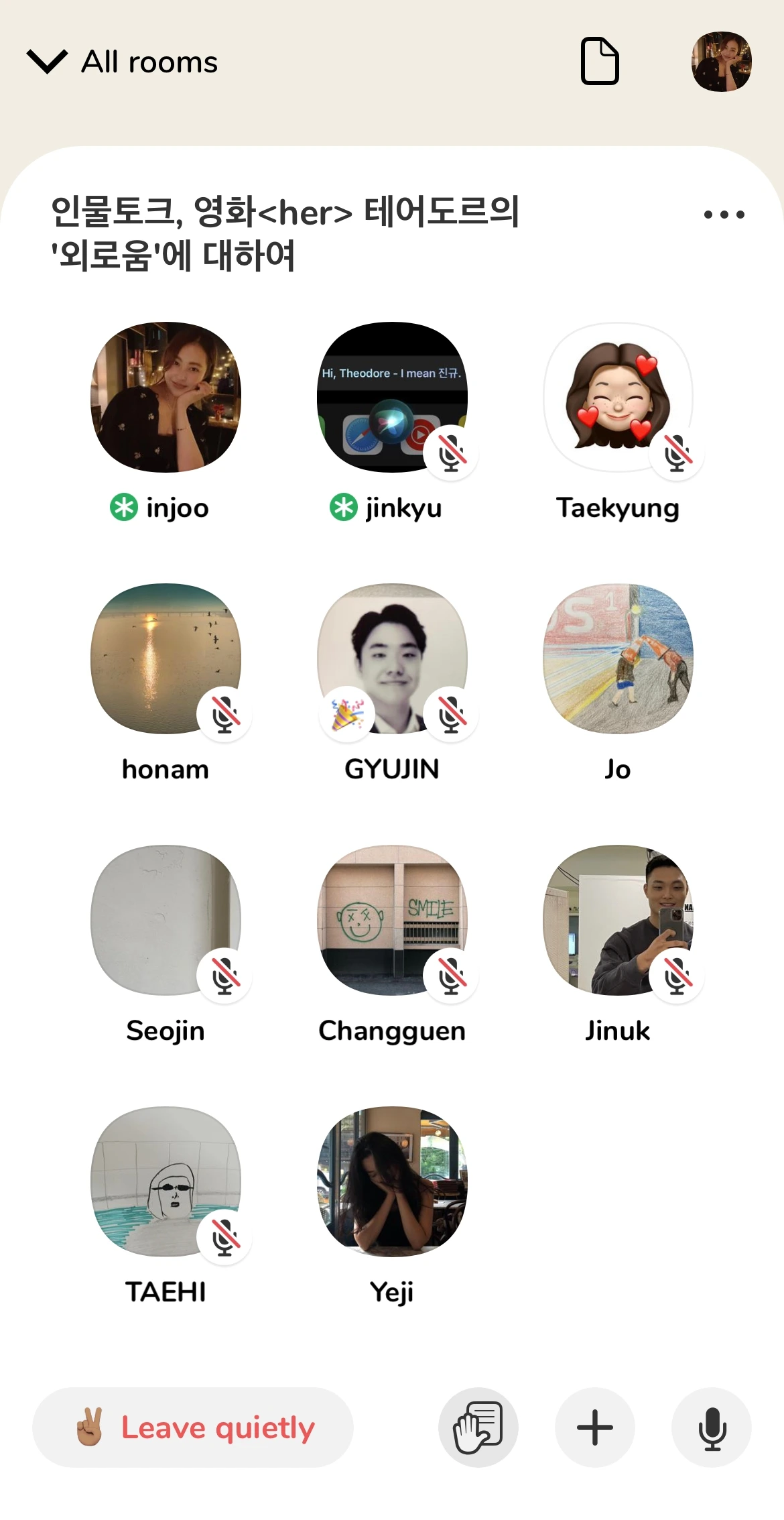 > 함께 수요일 밤11시부터 1시까지 대화를 나눈 분들 :-) 스피커로 마지막까지 참여해주신 분들로만 기록했습니다.
