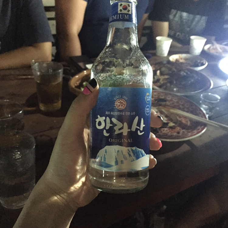 맛있는 목살, 양념고기도 있다. 버섯에 소시지까지 뿌연 연기가 계속 나면서- 쉴 틈 없이 리필된다. 게다가 맥주와 한라산 게다가 캔맥주까지! 무엇보다 좋았던 건, 뒤에는 바다, 앞에는 스크린과 스피커로 흘러나오는 존 메이어의 음악이었다. 정말 기절할 만한 제주의 풍경이다. 잔디를 밟고 있다는 것도, 너무나 행복한 일이었다. 그리고 다이어트 후 얼마만의 이런 만찬을 만나는지 하면서 쾌거를 불렀다. 한라산을 꼴깍꼴깍. 아무리 마셔도 취하지 않는 건 분위기 덕분!