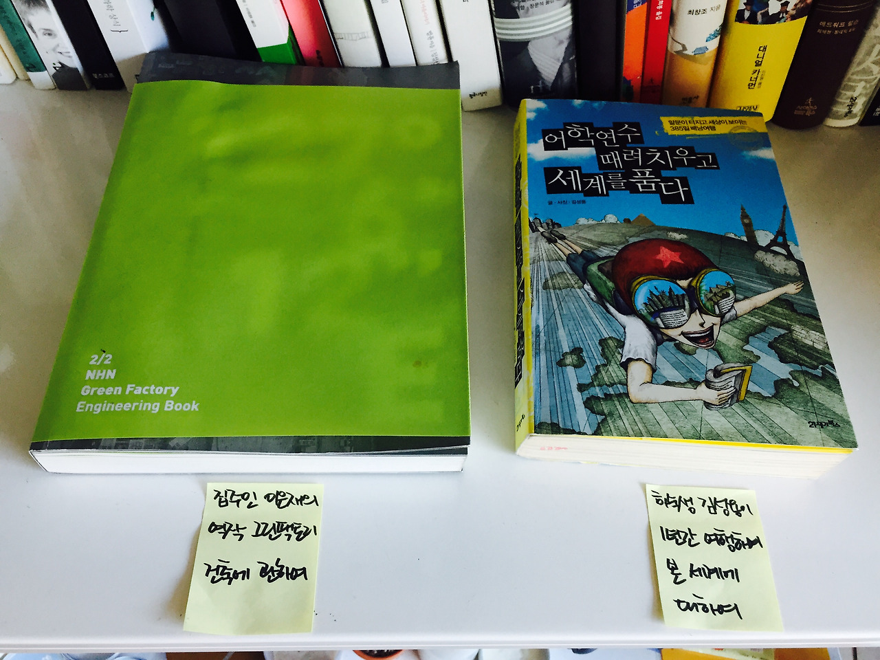 깨알같은 자기 PR도 곁들였다. 은재형이 공간 기획을 맡았던 네이버 사옥에 대한 책. 내가 대학생 때 1년간 배낭여행을 하며 끄적였던 기록이 담긴 지구 한바퀴 여행책. 요렇게 두 권을 부러 따로 빼내어 '보세요~보세요~' 했다. 근데 내 책은 지금봐도 제목이 참 오글거린다...편집권이 출판사에 있으니 작가에게 제목을 지을 권한이 크지 않았다.