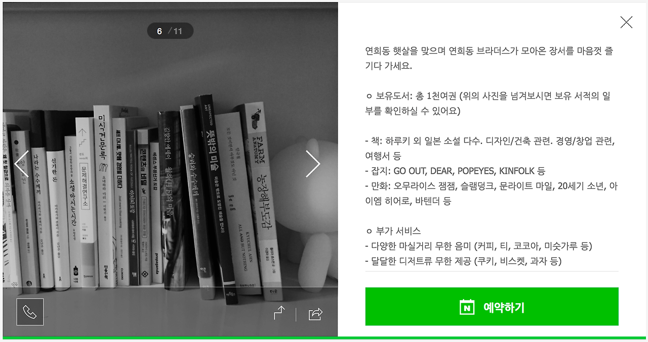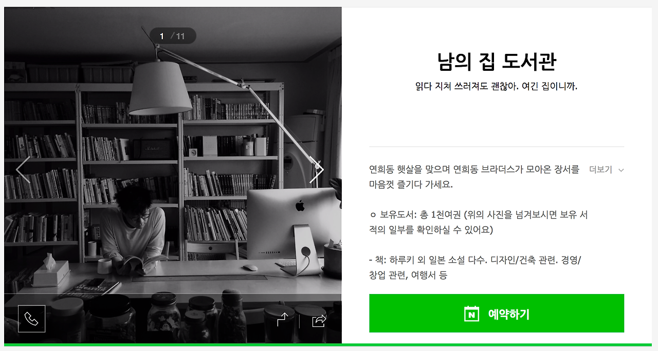 이 경험을 상품화해야 했다. 좋은 공간에서 책에 온전히 집중할 수 있는 시간을 어떻게 어필해야 할까? 요새 동네 서점이 부각되고 있으니 서점? 아니면 책방? 이건 책을 구매해야 하는 메시지가 전달되니 내 취지와는 맞지 않았다. 구매의 부담없이 마음껏 책을 볼 수 있는 그런 공간을 담는 명사가 필요했고, 거기엔 도서관이 제격였다. 도서관. 남의 집에서 하니 '남의 집 도서관'이네!