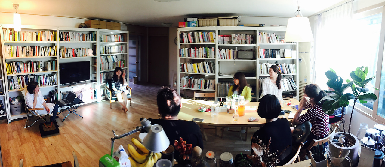 드디어 열린 밤의 서점 특강날. 예정된 일정보다 한달이 지연된 탓인지 처음에 신청해 주신 분 중 재신청해서 방문하신 분은 없었고 새로 신청해서 오신 분들로 거실이 채워졌다. 처음 뵙는 분들이 내 집 거실에 모여있는 이 광경. 오랜만에 접하니 좀 생경했다. 한창 프로젝트 진행했을 때의 무뎌진 초심을 되찾은 듯 했다. 역시 남의 집 프로젝트는 어색해야 제 맛이지.