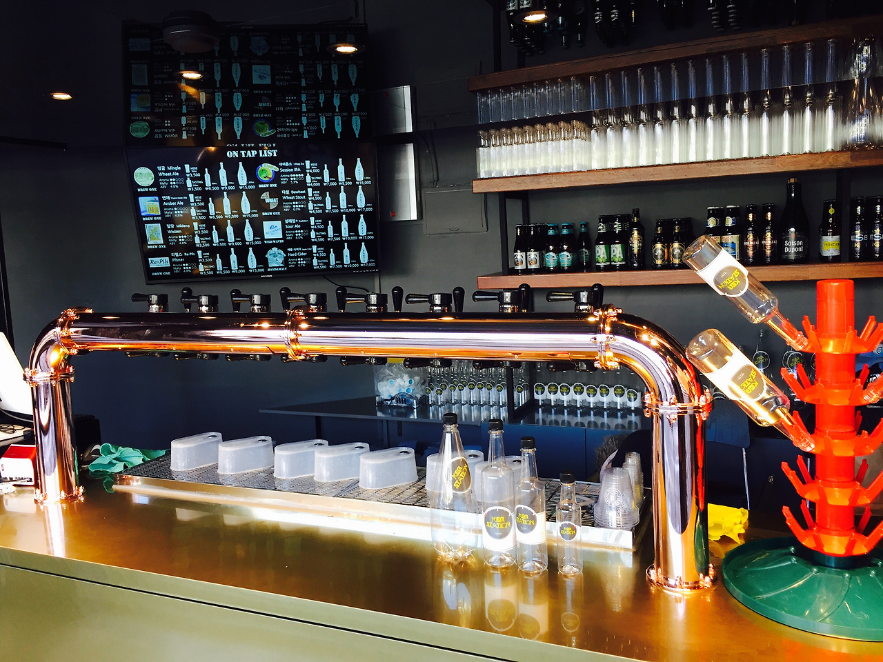 작년말 사러가 마트에 정체 불명의 맥주가게가 들어섰다. 수제맥주인데 테이크아웃이란다. 맥주도 테이크아웃이 되는구나? 싶은 호기심이 일어서 들어가봤다. 테이크아웃이라는 간판에 걸맞게 엉덩이 붙일 곳은 보이지 않는다. 대신 맥도날드마냥 간판이 있고 뭐뭐 주세요 하면 그 자리에서 플라스틱 병에 담는다. 그러곤 여기 말고 집에 가서 마시라는 강한 메시지가 담긴 비밀 봉다루에 담아준다. 이름은 KEG STATION. 주유소가 아니라 주주소다. 술떨어지면 들러서 채워가는 이곳. 과거 할아버지들이 술을 떼어다 마시는 게 이런 거였구나. 근데 왜 이걸 연희동에?