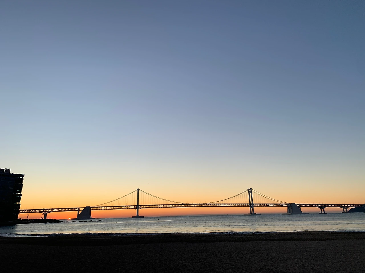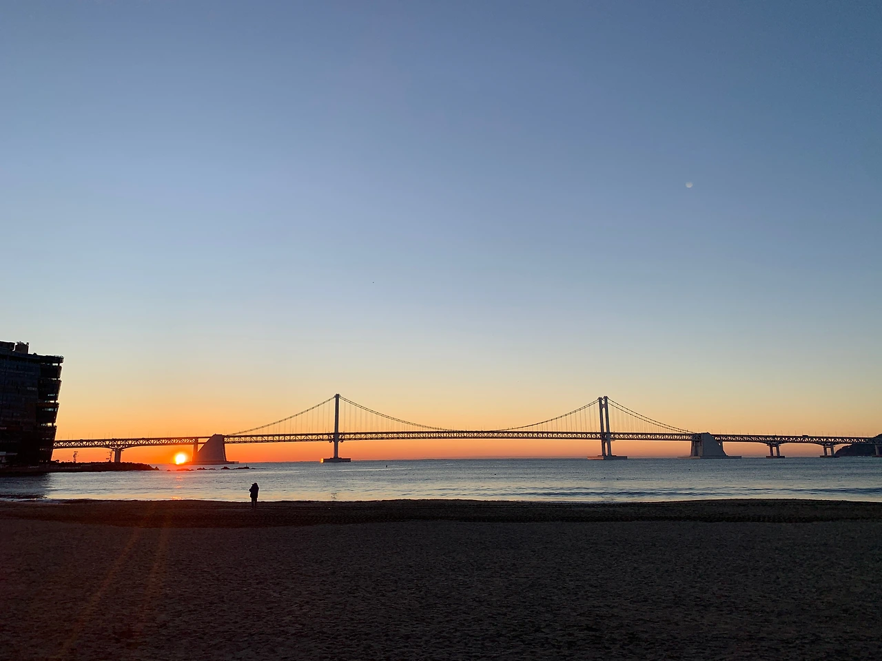10여분을 걸어 광안리 해변에 다가서자 조금씩 붉게 물든 바다가 눈에 들어오기 시작했다.