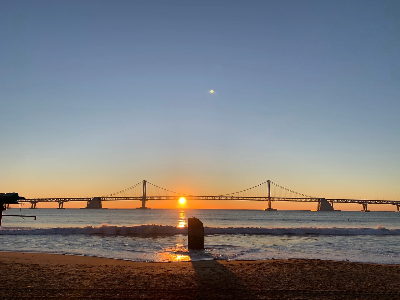 길을 가던 사람들도 고개를 들어 힘차게 떠오르는 태양을 보며 경건해지고, 이미 모래사장에서 태양을 기다리던 연인들은 손을 잡고 서로의 작은 소망을 담아 기도한다.