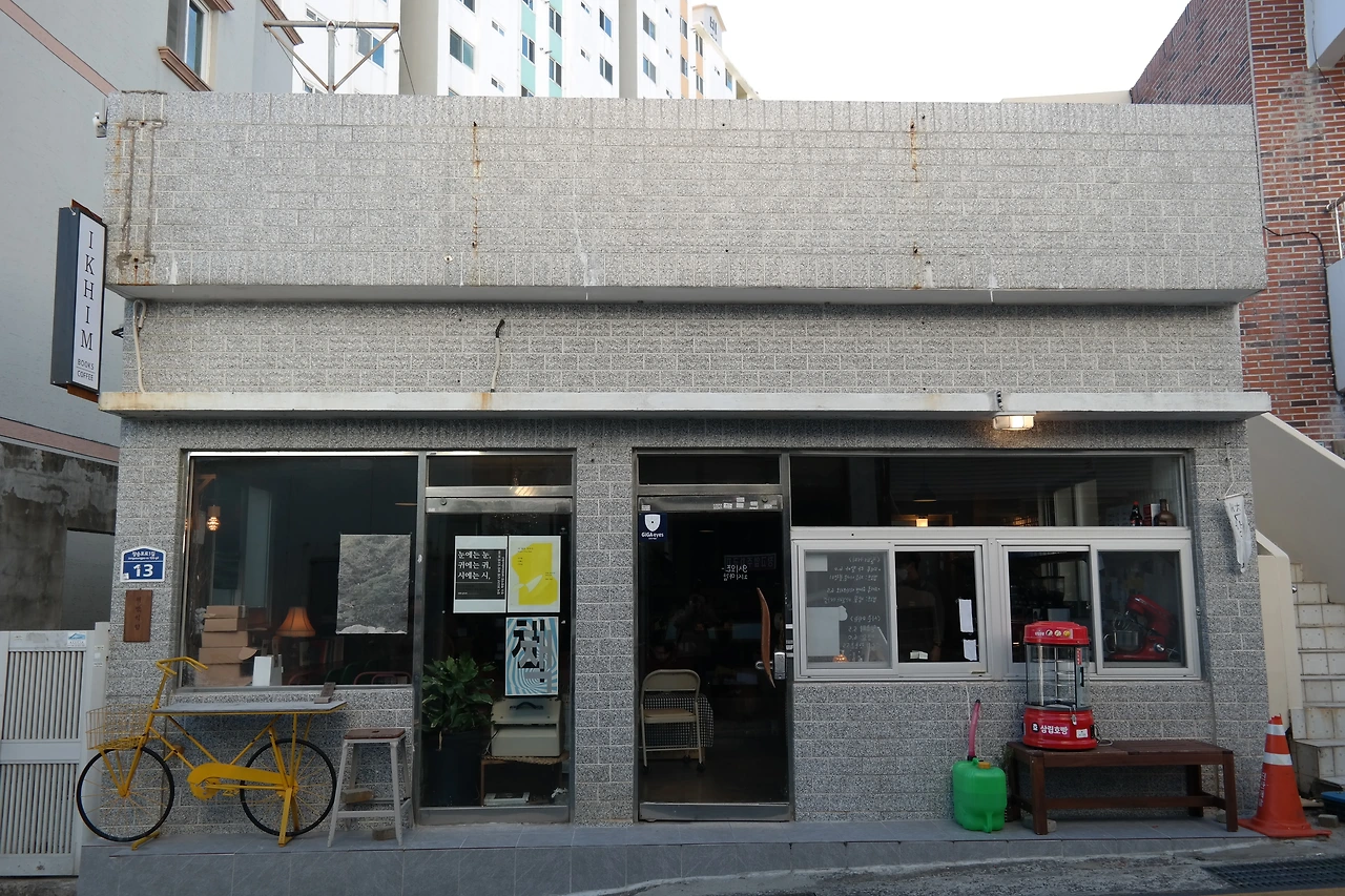책방익힘은 거제도 장승포 주택가 골목길에 위치한 작은 북카페다.
