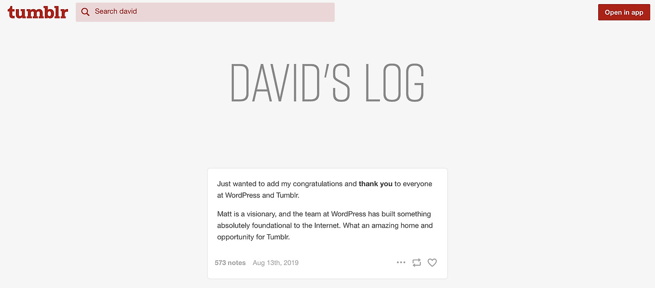 저는 텀블러를 개선시키는 최선의 방안은 텀블러 팀이 가장 잘 알고 있다고 믿습니다. 관련해서 제가 특별한 지식을 가지고 있지는 않습니다. (하지만) 저는 텀블러 서비스 팬이고, 퍼블리싱(Publishing)을 잘 이해하고 있습니다. 워드프레스도 알고 있습니다. 비록 텀블러에 해당하지 않지만, 앞서 언급한 것들에 대하여 스스로 전문성을 가지고 생각합니다. 저는 특정한 분야에서 얻은 교훈을 다른 분야에 적용할 수 있다고 생각합니다. 특히 워드프레스에서 사용자에게 창의성과 표현에 대한 진정한 통제권을 준 사례가 이에 해당합니다. 저는 텀블러 커뮤니티에도 이러한 자유와 창의성의 일부를 제공할 수 있기를 기대하고 있습니다.