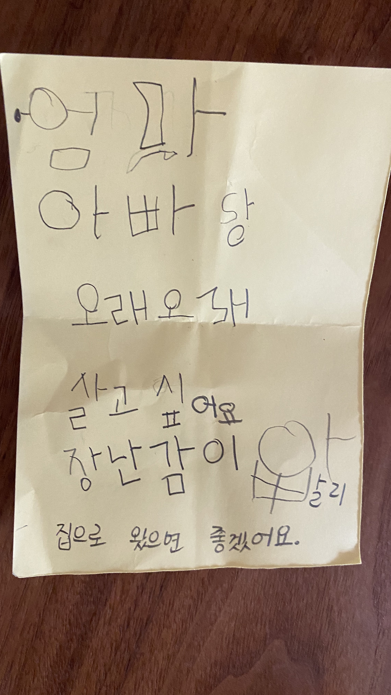 우리 아이는 갑자기 울기 시작했고, 이렇게 말을했다.