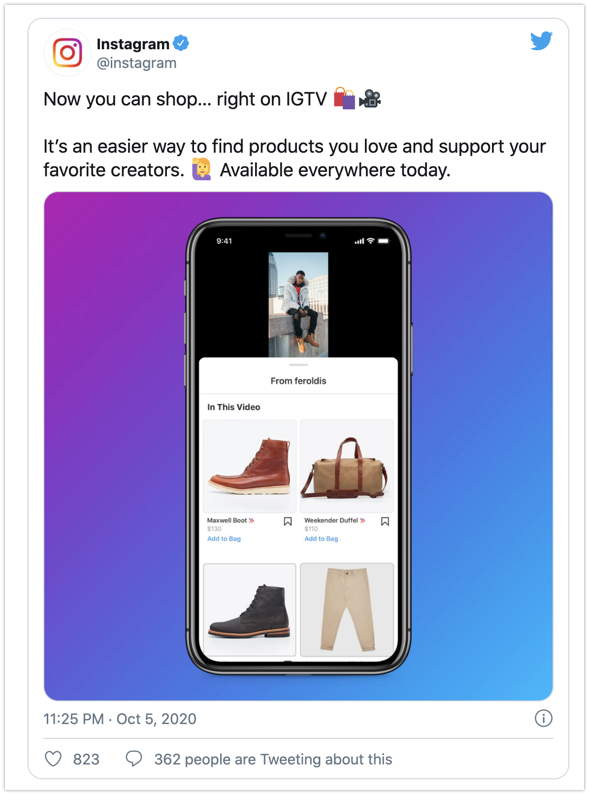 이는 최근 인스타그램 COO(Justin Osofsky)의 IGTV의 쇼핑 기능 지원에 대한 성명을 통해 엿볼 수 있습니다.
