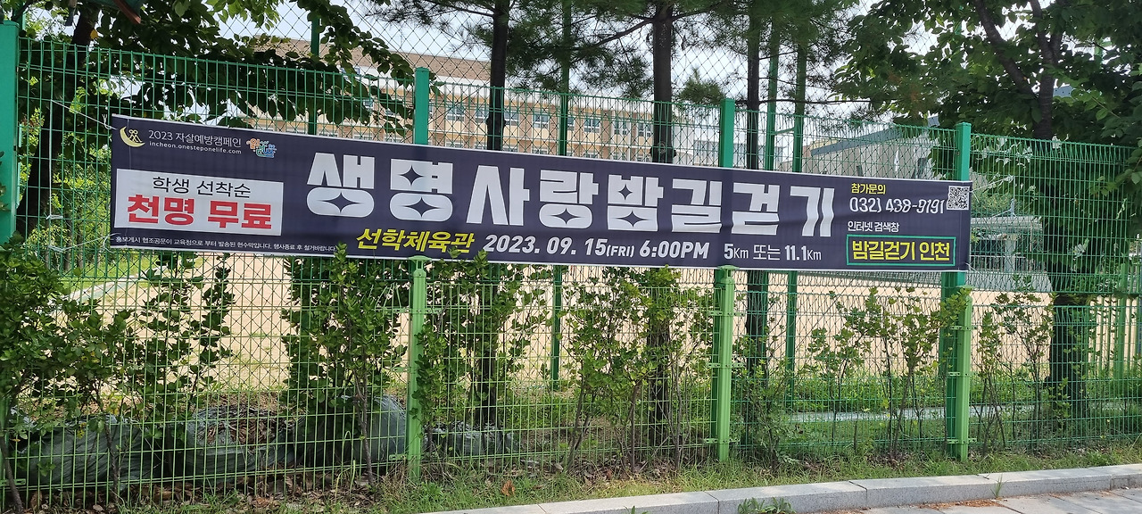 산책길에서 돌아와 현수막의 안내대로 인터넷에 들어가 ‘밤길 걷기 인천’를 찾아보니 ‘자살예방 캠페인'이란다. 약간은 섬뜩한 생각이 들었으나 내용을 읽어보았다.