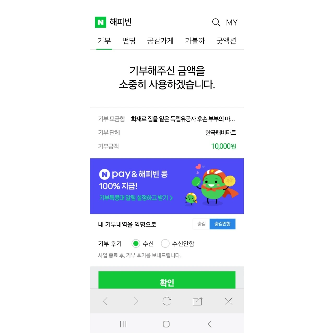 오늘은 독립유공자분들을 위해 기부했습니다.