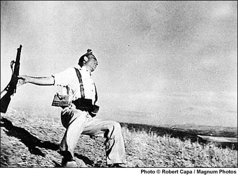 디지털 기술이 도입되면서 사진의 리얼리티를 수정하는 것이 더욱 쉽게 되었습니다. 그러나 필름만이 유일한 현장 기록의 수단이던 시절에도 사진의 진실성은 여전히 문제가 되었던 모양입니다. 피사체를 선택하는 순간부터 사진가의 의지가 반영되기 때문이겠죠. 아래의 사진은 신화가 된 사진이지만 동시에 많은 이들이 의문을 제기하는 사진이기도 합니다.