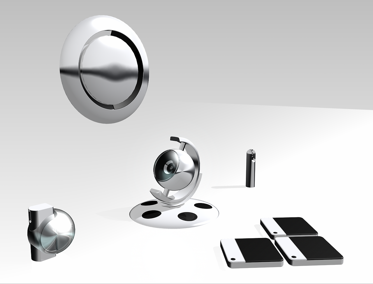 디자인된 아이템은 총 5가지로 세상을 여행하는 기분이 들게 하는 지구본 닮은 프로젝터와 벽에 원하는 개수만큼 붙였다 뗄 수 있게 하는 스피커(당시 블루투스는 없었지만 뭔가 배터리를 탑재한 무선으로 신호를 주고받는 스피커가 가능하지 않을까 하는 생각을 제안했었다), 습도를 맞춰주는 물방울 모양의 가습기와 매운 후추와 바닷물 소금냄새를 연상하게 하는 향수병 그리고 벽에 장착해 온도를 조절하는 원형의 에어컨은 바람을 이리저리 불어줘서 마치 현장에 있는 느낌이 들지 않을까? 하는 상상을 했었다.