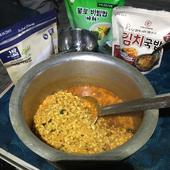 암튼 계속되는 산행에 날씨가 급격히 안 좋아지기 시작해서 결국 철수하기로 결정... 온 세상이 하얀 산을 마음껏 감상하다가 하산.... 아~ 정말 아름다웠음... 눈 쌓인 산을 아무도 먼저 지나가지 않았기 때문에 더욱 아름다웠던 듯~~ 오늘은 정말 인생 풍경을 본 날이었다. 캠프로 하산하니 우리의 master of cook 께서 엄청 큰 Samosa (인도식 튀김)를 준비해주심... 물론 인도 음식을 먹지 못하는 난 구경만 했지만 ㅋㅋㅋ