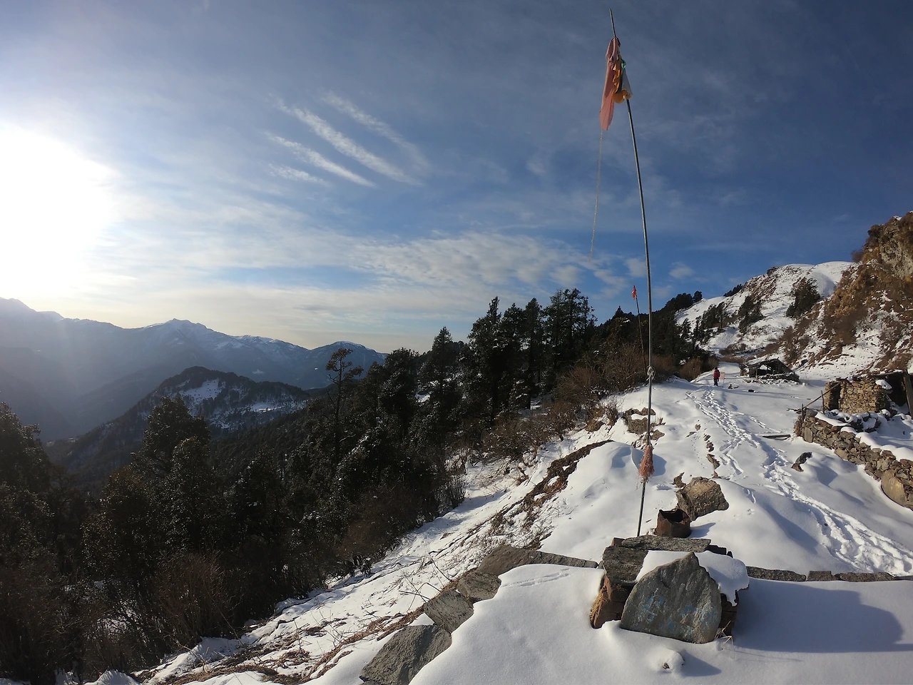 전날 저녁부터 내린 눈이 온 세상을 덮었던 월요일 오전... 전날과 다른 정말 아름다운 파란 하늘과 겨울에도 따뜻함을 느낄 수 있는 햇볕, 반대로 밤새 방에서는 추워서 얼어 죽을 뻔하고 당연히 온수도 없다. 그래도 화장실을 쓸 수 있다는 것에 대해 감사 그리고 세수와 발은 물티슈 한 장으로 해결했다. 그러나 아직도 트레킹을 시작할 수 있을지 없을지 모른단다. 왜 나면 정상의 날씨에 대해서 정부에서 더 보고 있다가 등반 허가증을 준다고 했기 때문이다. 허가증은 발행되었으나 아직 팀으로 전달은 안되었다고 한다. 같은 숙소에 전날 출발 예정이었던 여성팀이 있었으나 날씨가 안 좋아서 하루 연기되어 우리와 같이 출발하였다.