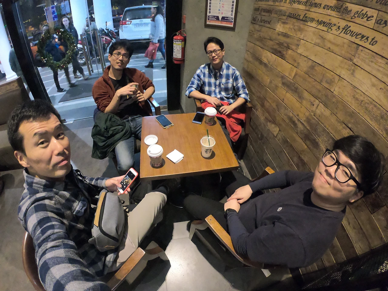 다른 친구들은 델리 시내 구경 나가고 한국사람들은 잠시 쉬었다가 델리에 살고 있는 내 일본 친구 켄을 만나러 나갔다. 싱가포르에서 마지막으로 보고 한 3년 만에 다시 보는 것인데도 오래 안된 거 같은 느낌이었다. 인도 유명식당 Pind Balluchi에서 저녁을 먹고 피로를 풀기 위해 델리 스타벅스로 감. 켄과 폭풍 수다 후 그의 결혼을 미리 축하하고 다시 숙소로 복귀 및 출발 준비. 히말라야에서 한겨울에 샤워를 기대할 수 없기 때문에 마지막 샤워를 즐겼다.