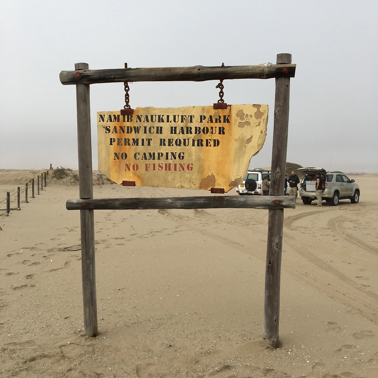 여기도 기존에 나미비아에 속해있지 않았던 지역이었다가 지금은 나미비아에 편입되어있는데, 왼쪽에 보이는 말뚝들이 그때 지역을 나누는 표시라고 한다. 근데 표지판은 그냥 캠핑 금지, 낚시 금지라고...